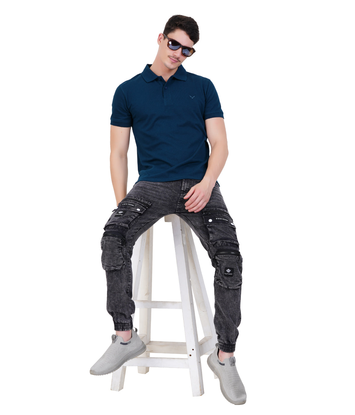 Men's Cotton Rich Polo T Shirt Regular Fit - BLACK STRIPE PRINT
